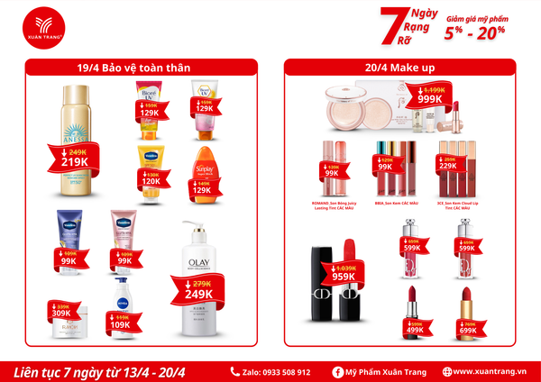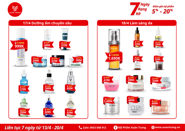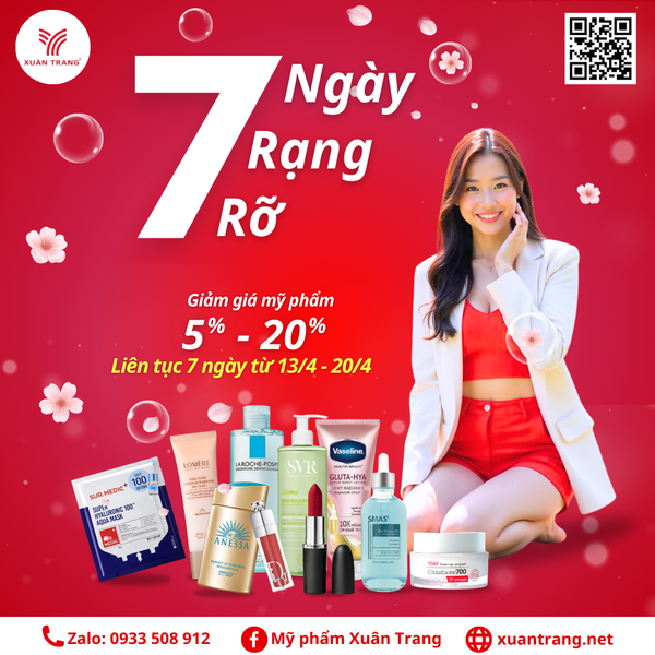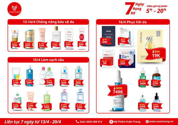 7 NGÀY YÊU DA - RẠNG RỠ ĐÓN LỄ. GIẢM GIÁ 5% - 20% LIÊN TỤC 7 NGÀY TỪ 13/4 - 20/4