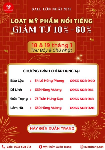 SALE LỚN NHẤT 2025 - LOẠT MỸ PHẨM NỔI TIẾNG GIẢM TỪ 10% - 60%