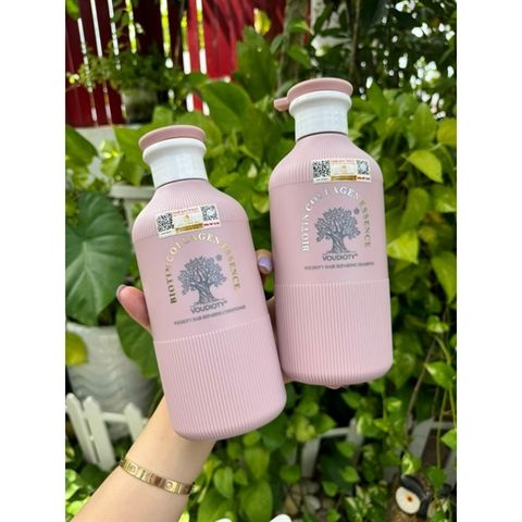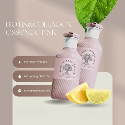 Cặp Dầu Gội Xả Biotin Collagen Essence Pink, Giảm Rụng Tóc, Phục hồi tóc chắc khỏe - bóng mượt 500ML