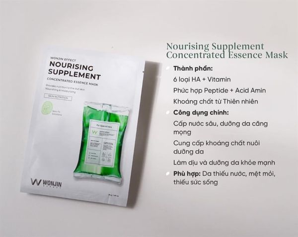 Wonjin effect Mặt nạ Nourising Supplement tương đương với 1 liệu trình clinic, cùng với hệ thống dẫn truyền liposome giúp đưa tinh chất đến các vùng da và hệ thống đẩy Mediseal giúp đẩy tinh chất vào nhanh và sâu đến nhiều lớp biểu bì, giúp da khỏe mạnh mà không cần mất nhiều thời gian như ở spa.